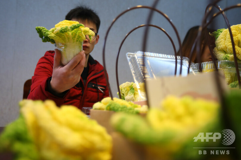 同学院の侯喜林(Hou Xilin)教授が長年品種改良を重ねた「白菜」が人気を集めている。黄色いバラに似ており、食感も良く、白菜の新品種としてさまざまなルートで販売されている。(c)CNS/JCM/AFPBB News