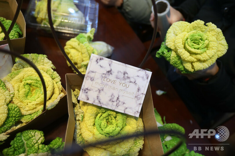 同学院の侯喜林(Hou Xilin)教授が長年品種改良を重ねた「白菜」が人気を集めている。黄色いバラに似ており、食感も良く、白菜の新品種としてさまざまなルートで販売されている。(c)CNS/JCM/AFPBB News