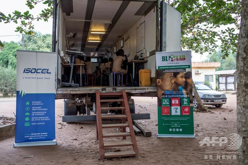 ベナン最大の都市コトヌー(Cotonou)を拠点にする非営利団体「ブロラブ(BloLab)」が考案した長さ13メートルのトレーラーは、太陽電池パネル12枚で動き、十分な数のノートパソコンを搭載している。田舎の生徒たちに、ほとんどの家庭が買う余裕のないコンピューターに慣れ親しむ機会を与えている。