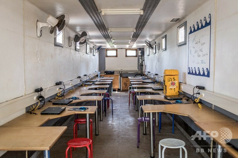 ベナン最大の都市コトヌー(Cotonou)を拠点にする非営利団体「ブロラブ(BloLab)」が考案した長さ13メートルのトレーラーは、太陽電池パネル12枚で動き、十分な数のノートパソコンを搭載している。田舎の生徒たちに、ほとんどの家庭が買う余裕のないコンピューターに慣れ親しむ機会を与えている。