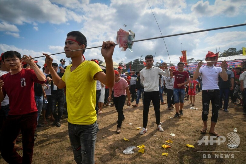 【2月18日 CNS】中国・海南省(Hainan)の文筆峰(Wenbifeng)盤古文化旅行区で13日、海南島各地から集まった12組の演者らが、1300年の歴史を持つ棒を頬に通すパフォーマンス「穿杖(Chuanzhang)」を披露した。(c)CNS/JCM/AFPBB News