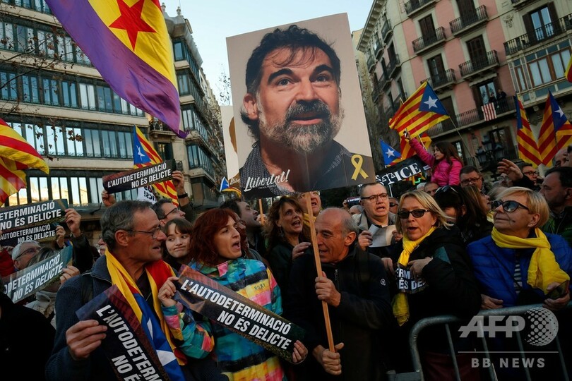 【2月17日 AFP】(更新)スペインの首都マドリードでカタルーニャ(Catalonia)自治州の独立支持派元指導者の公判が12日に開廷したことを受けて、同州の州都バルセロナで16日、この公判に抗議するデモ行進が行われた。バルセロナ市警によると、デモにはおよそ20万人が参加した。