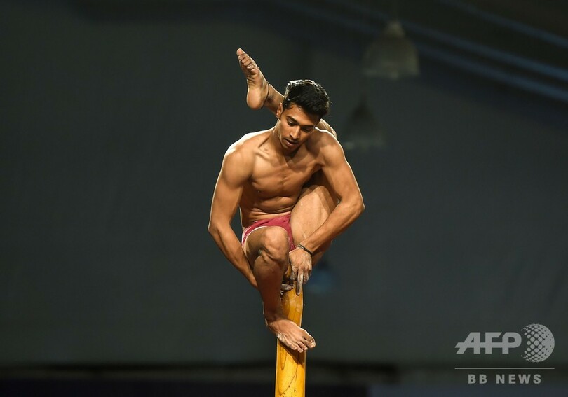 【2月18日 AFP】インド・ムンバイで16日、「ポールの上のヨガ」とも呼ばれる同国伝統のスポーツ「マラカーンブ(Mallakhamb)」の世界大会が開催された。参加者たちは木の柱の上で逆立ちをしたり、体を反らしたりするパフォーマンスを披露した。