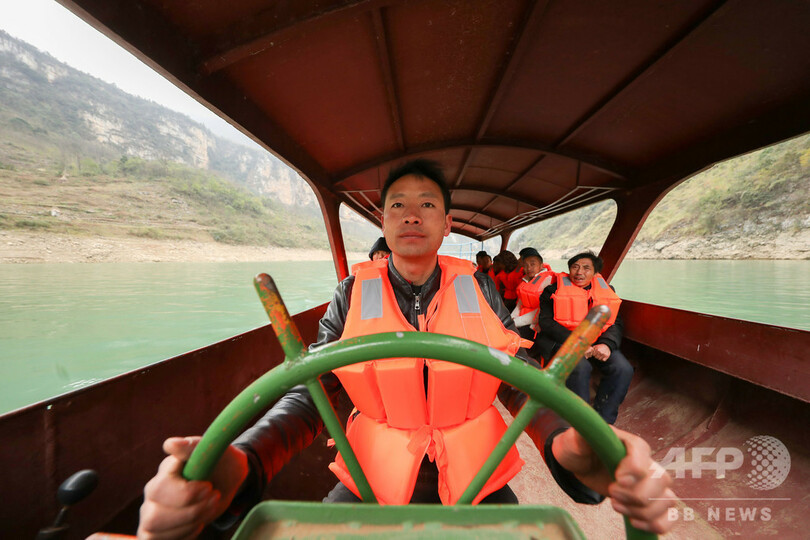 出稼ぎに行く村民送り続ける渓谷の船頭さん 貴州・黔西
