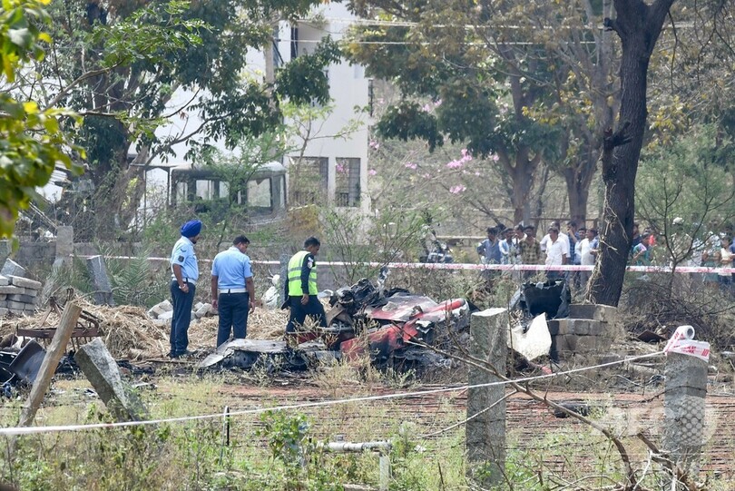 2機はインド空軍のアクロバット飛行隊「スーリヤ・キラン(Surya Kiran)」所属機で、ベンガルールで20日開幕する航空ショー「エアロ・インディア(Aero India)」の初日にアクロバット飛行を行う予定だった。(c)AFP