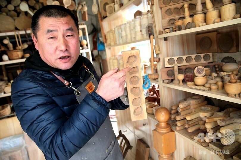 店主の楊宝林(Yang Baolin)さん(54)は、子どものころから父親の手ほどきで木工品の作り方を学び、もう40年近くになる。特に楊さんが作る月餅製造用の木型は多彩で、非常に精巧だ。