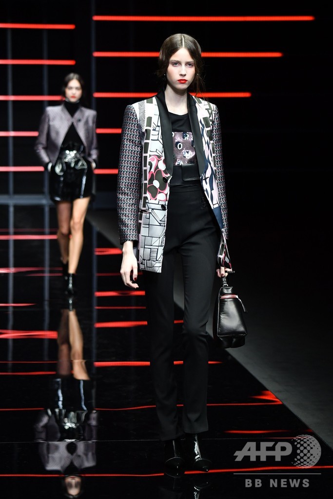 21日には、ジョルジオ・アルマーニ(Giorgio Armani)が手がけるセカンドライン「エンポリオ アルマーニ(Emporio Armani)」が新作を発表した。(c)AFP