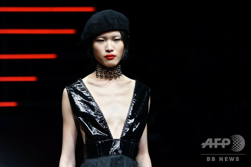 21日には、ジョルジオ・アルマーニ(Giorgio Armani)が手がけるセカンドライン「エンポリオ アルマーニ(Emporio Armani)」が新作を発表した。(c)AFP