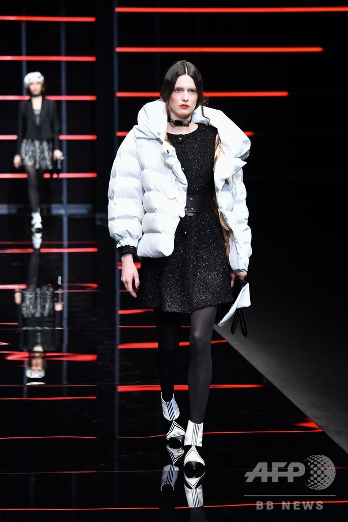 21日には、ジョルジオ・アルマーニ(Giorgio Armani)が手がけるセカンドライン「エンポリオ アルマーニ(Emporio Armani)」が新作を発表した。(c)AFP