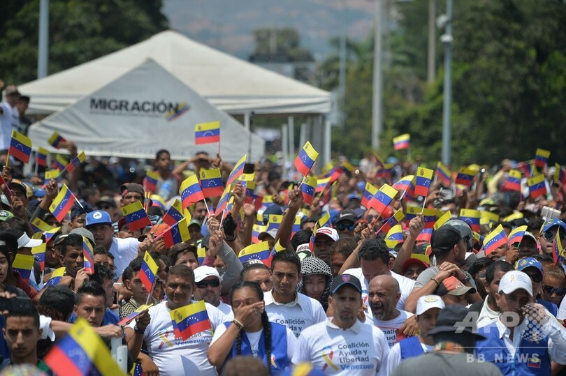 暫定大統領として50か国から承認を受けているグアイド氏は、ベネズエラとの国境沿いにあるコロンビア・ククタ(Cucuta)のティエンディタス(Tienditas)橋にある倉庫で、人道支援物資の配布を正式に開始。コロンビア、チリ、パラグアイの各大統領も参加した配布開始の式典で、「人道支援物資は人々の命を救うため平和的また平然と、ベネズエラに確実に運ばれる」と述べた。