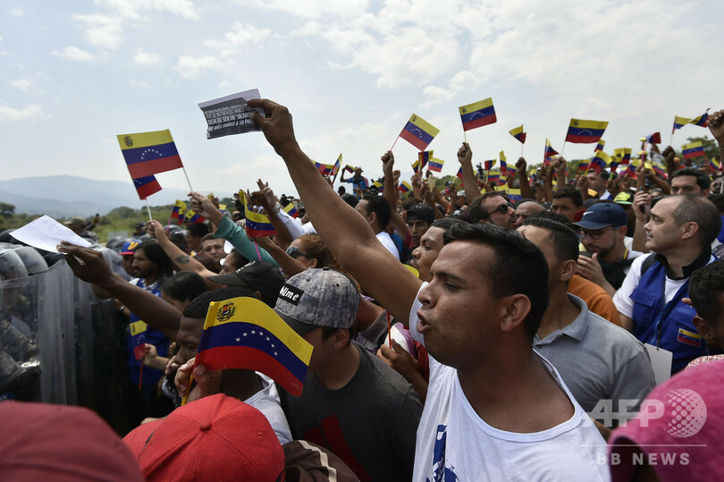 ベネズエラに「支援物資到着」と野党指導者 国境付近では衝突も