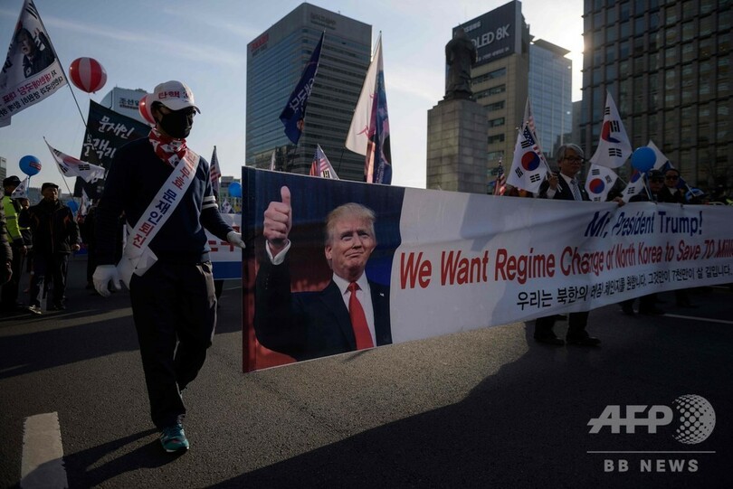 韓国ソウルで親米保守派が反北朝鮮デモ、米朝首脳会談を前に