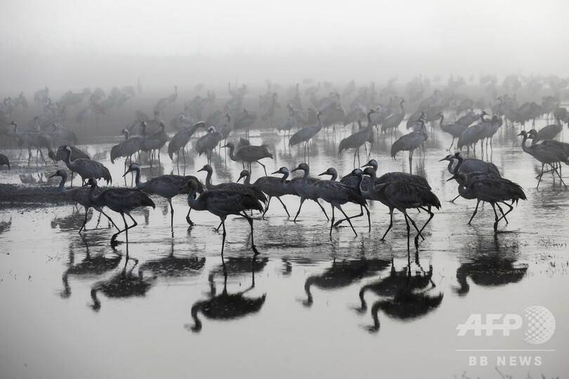 【今日の1枚】ツルが織りなす水墨画 イスラエル