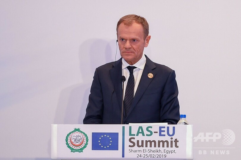 EUとアラブ連盟(Arab League)の首脳会議に出席し、英国のテリーザ・メイ(Theresa May)首相と個別会談を持ったEU大統領のトゥスク氏は、「われわれが置かれている状況では、延期が理性的な解決策になると思う」と述べた。(c)AFP
