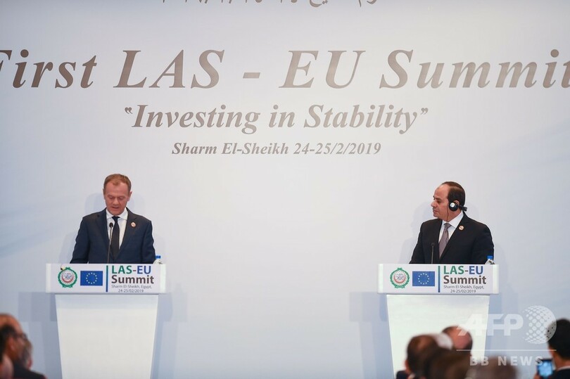 EUとアラブ連盟(Arab League)の首脳会議に出席し、英国のテリーザ・メイ(Theresa May)首相と個別会談を持ったEU大統領のトゥスク氏は、「われわれが置かれている状況では、延期が理性的な解決策になると思う」と述べた。(c)AFP