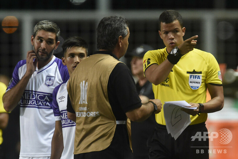 【2月28日 AFP】27日に行われたリベルタドーレス杯(Copa Libertadores de America 2019)、予選3回戦のアトレチコ・ミネイロ(Clube Atletico Mineiro、ブラジル)対デフェンソール・スポルティング(Defensor Sporting、ウルグアイ)戦で、大会を主催する南米サッカー連盟(CONMEBOL)が選手交代ボードを用意するのを忘れたため、第4審はその代わりとして数字の書かれたA4用紙を使用した。(c)AFP