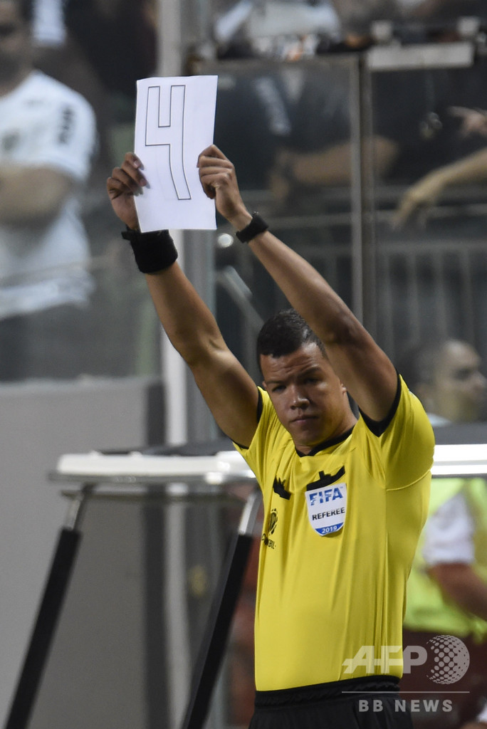 【2月28日 AFP】27日に行われたリベルタドーレス杯(Copa Libertadores de America 2019)、予選3回戦のアトレチコ・ミネイロ(Clube Atletico Mineiro、ブラジル)対デフェンソール・スポルティング(Defensor Sporting、ウルグアイ)戦で、大会を主催する南米サッカー連盟(CONMEBOL)が選手交代ボードを用意するのを忘れたため、第4審はその代わりとして数字の書かれたA4用紙を使用した。(c)AFP