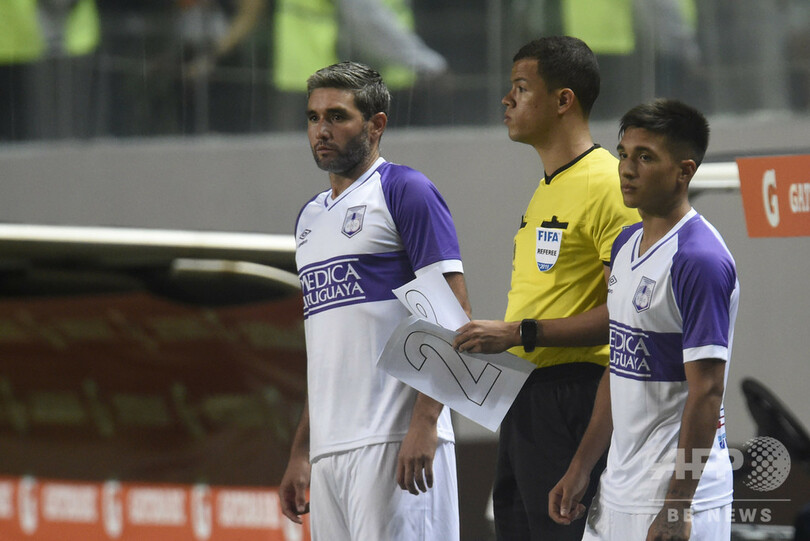 【2月28日 AFP】27日に行われたリベルタドーレス杯(Copa Libertadores de America 2019)、予選3回戦のアトレチコ・ミネイロ(Clube Atletico Mineiro、ブラジル)対デフェンソール・スポルティング(Defensor Sporting、ウルグアイ)戦で、大会を主催する南米サッカー連盟(CONMEBOL)が選手交代ボードを用意するのを忘れたため、第4審はその代わりとして数字の書かれたA4用紙を使用した。(c)AFP