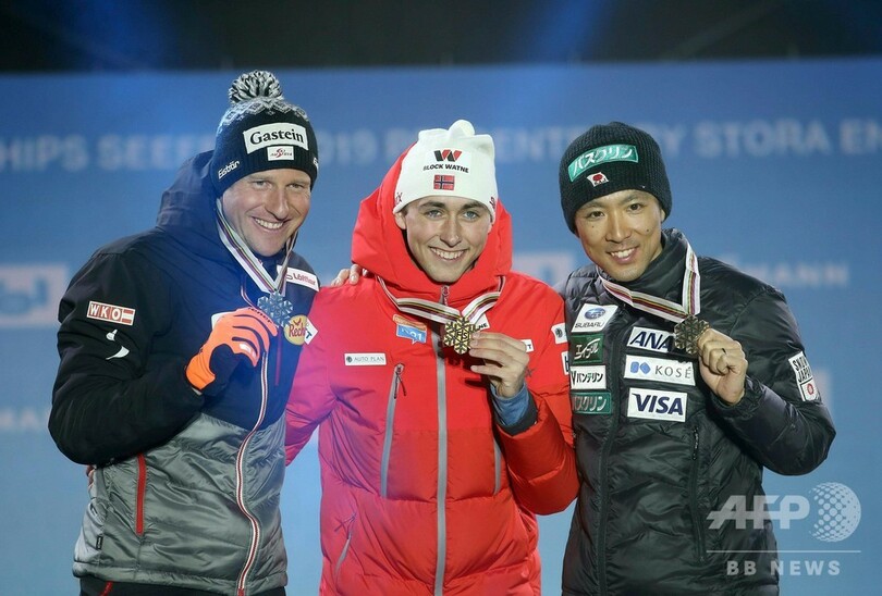 【3月1日 AFP】ノルディックスキー世界選手権(FIS Nordic World Ski Championships 2019)は28日、オーストリア・ゼーフェルト(Seefeld)で複合個人ノーマルヒルが行われ、渡部暁斗(Akito Watabe)が銅メダルを獲得した。