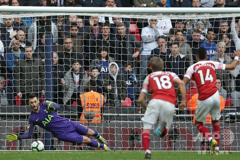 トッテナムを指揮するマウリシオ・ポチェッティーノ(Mauricio Pochettino)監督は試合後、「ロリスのセーブは最大のプレゼントだった。負けに値しない出来だったのでとても満足している。われわれは相手より良かったので、こういう試合で負けてしまっては面目が立たない」と話し、オーバメヤンのPKを阻止した守護神ロリスを称賛した。(c)AFP/Kieran CANNING