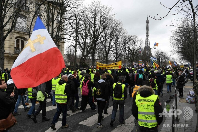【3月3日 AFP】エマニュエル・マクロン(Emmanuel Macron)仏大統領の政策に抗議する「ジレ・ジョーヌ(黄色いベスト、gilets jaunes)」運動は2日、16週目を迎え、マクロン氏に圧力をかけ続けるデモがフランス全土で行われたが、またしても破壊行為や暴力沙汰が発生した。