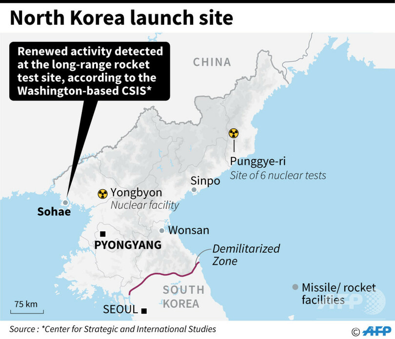 米シンクタンク「戦略国際問題研究所(CSIS)」は、発射場の再建作業は首脳会談中から行われており、会談前から始まっていた可能性もあるとしている。(c)AFP