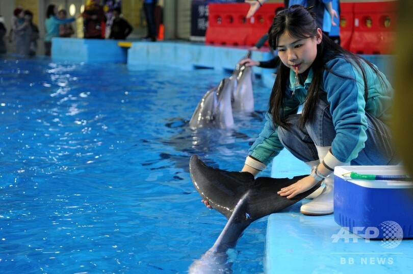 中国・安徽省(Anhui)合肥市(Hefei)にある「合肥海洋世界」(Hefei Aquarium)の孫麗如(Sun Liru)さんは、90年代生まれの若い女性調教師。イルカやアザラシの調教に約4年携わってきた。孫さんは「子どもの頃からの動物好きが縁で、大学卒業後にこの仕事に就いた」と話す。孫さんの目には、イルカがかわいい子どものように見える。孫さんは毎日の訓練と演技以外の時間もずっと動物たちの「保母さん」だ。