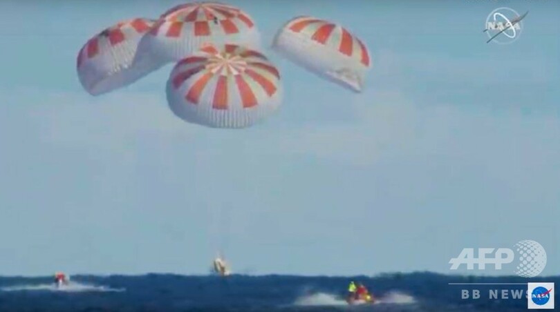 【3月9日 AFP】米宇宙開発企業スペースX(SpaceX)のカプセル型宇宙船クルー・ドラゴン(Crew Dragon)が8日、米フロリダ州沖の大西洋に着水し、国際宇宙ステーション(ISS)から地球に帰還した。今回のミッションは米航空宇宙局(NASA)の無人飛行試験として行われたもので、この成功により、米国による有人宇宙飛行の再開に道が開かれた。