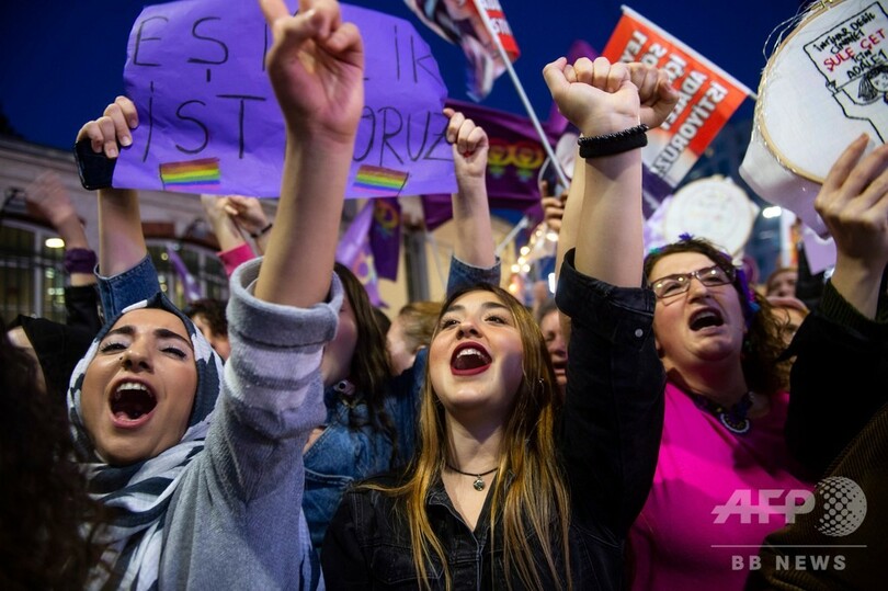 【3月9日 AFP】トルコ最大都市イスタンブールの中心部で8日、「国際女性デー(International Women's Day)」に合わせて女性ら数千人が当局が禁止した抗議デモを行い、女性の権利向上を求め、女性への暴力を非難した。警察はデモ参加者に催涙ガスを使用した。
