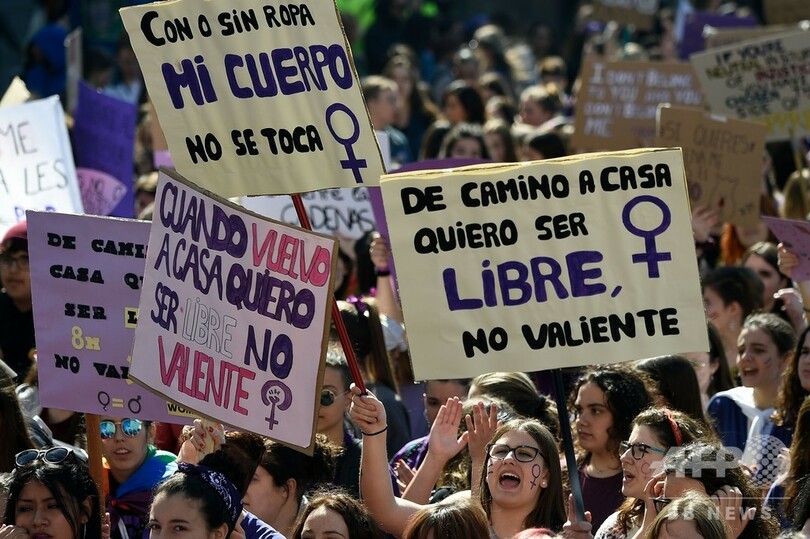 一方、スペインでも同日、来月の総選挙の争点になっている女性平等を求めてストライキと大規模なデモ行進が行われた。