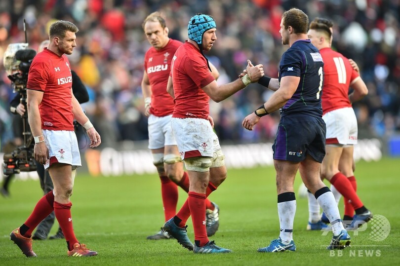 前半にジョシュ・アダムズ(Josh Adams)とジョナサン・デイビス(Jonathan Davies)がトライを決めたウェールズは、後半にけが人続出のスコットランドの猛反撃に遭ったものの、前半の得点差を守り切って勝利した。