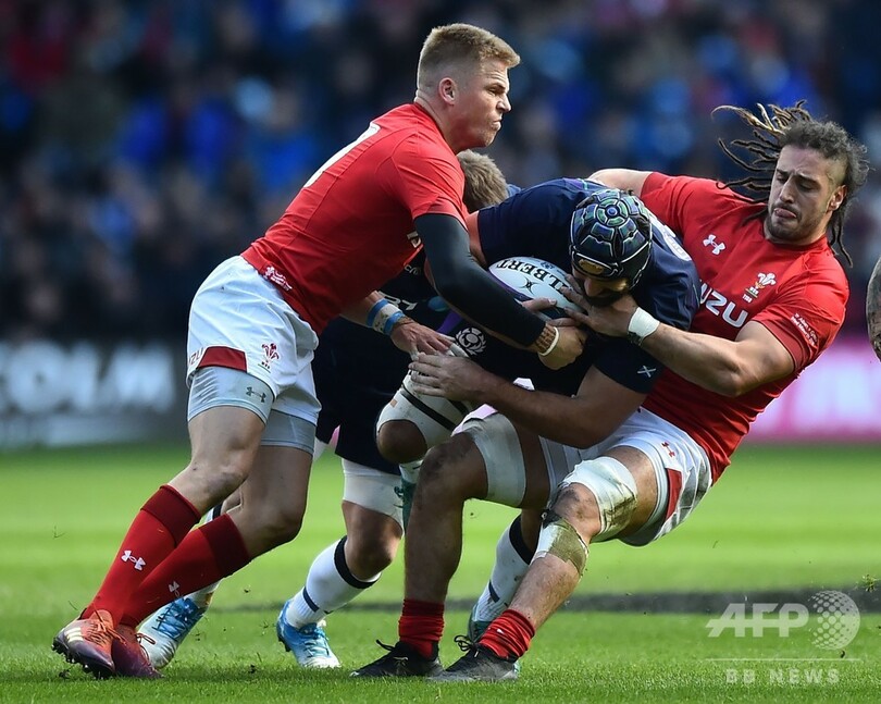 前半にジョシュ・アダムズ(Josh Adams)とジョナサン・デイビス(Jonathan Davies)がトライを決めたウェールズは、後半にけが人続出のスコットランドの猛反撃に遭ったものの、前半の得点差を守り切って勝利した。