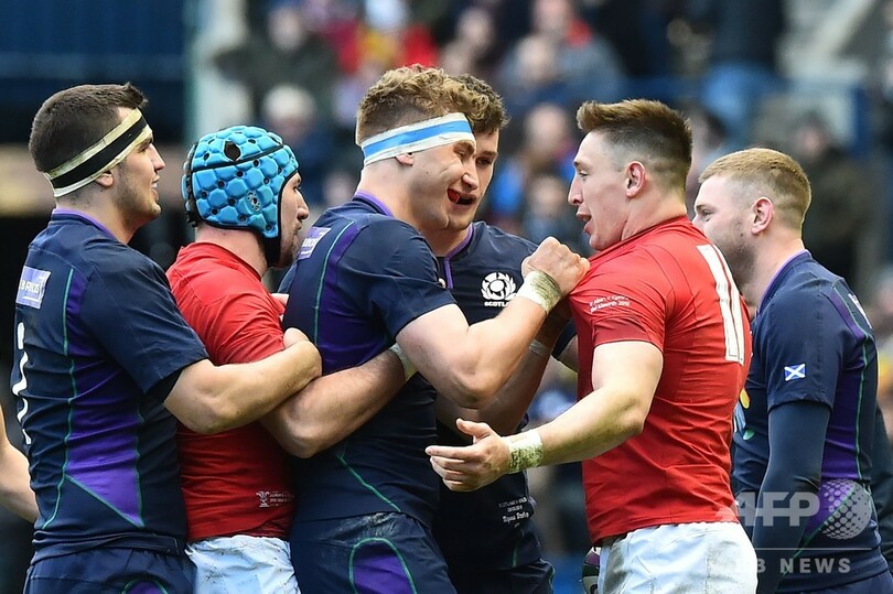前半にジョシュ・アダムズ(Josh Adams)とジョナサン・デイビス(Jonathan Davies)がトライを決めたウェールズは、後半にけが人続出のスコットランドの猛反撃に遭ったものの、前半の得点差を守り切って勝利した。