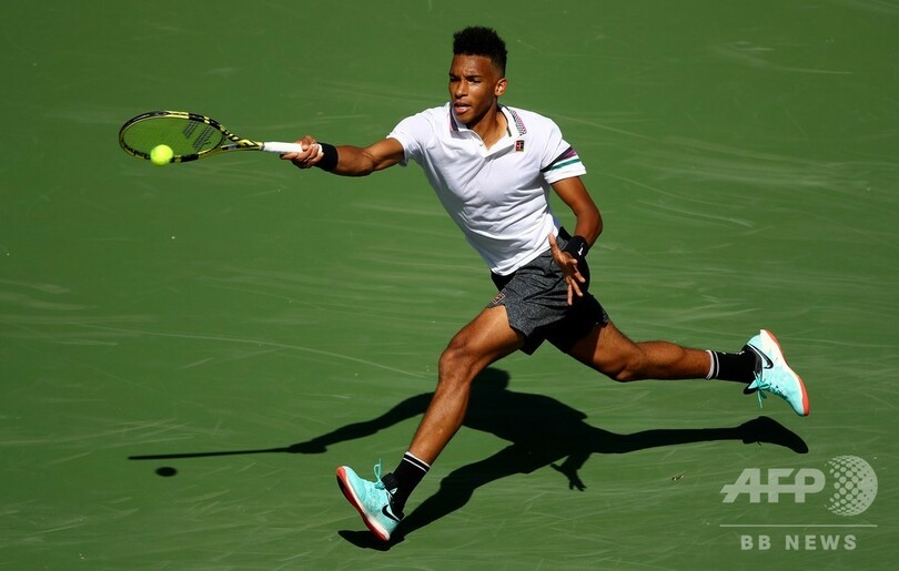 オジェ・アリアシムは次戦、西岡良仁(Yoshihito Nishioka)と第21シードのロベルト・バウティスタ・アグト(Roberto Bautista Agut、スペイン)の勝者と対戦する。(c)AFP/Rebecca BRYAN