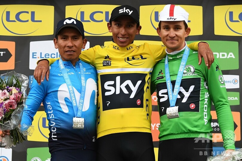 【3月18日 AFP】自転車ロードレース、パリ~ニース(Paris-Nice 2019)は17日、第8ステージ(ニース発着、110キロメートル)が行われ、チームスカイ(Team Sky)の新星エガン・ベルナル(Egan Bernal)が同じコロンビア出身であるモビスター・チーム(Movistar Team)のナイロ・キンタナ(Nairo Quintana)との息詰まる攻防を制し、総合優勝を果たした。