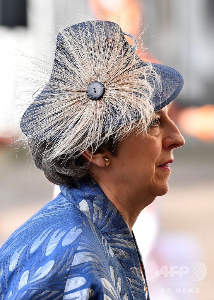 式典にはエリザベス女王(Queen Elizabeth II)や、チャールズ皇太子(Prince Charles)夫妻、ウィリアム王子(Prince William)夫妻、ヘンリー王子(Prince Harry)夫妻ら英王室一家のほか、テリーザ・メイ(Theresa May)首相らが出席した。(c)AFP