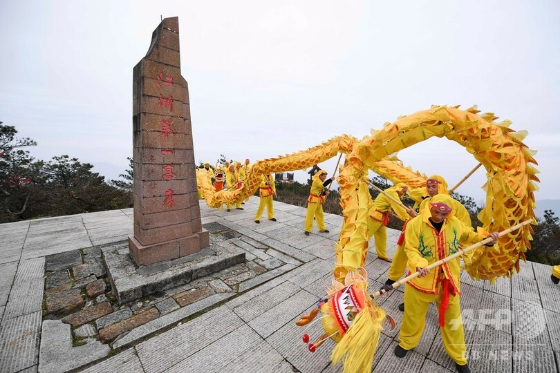 山頂に舞う「群竜」 浙江・竜泉山