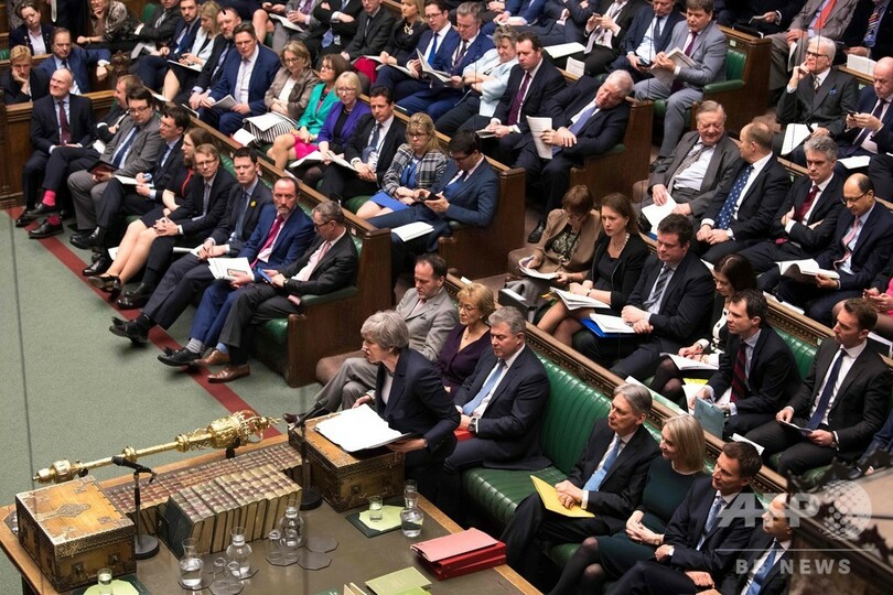 【3月14日 AFP】英議会は13日、英国が欧州連合(EU)との合意なくEUを離脱することを拒否する動議を僅差で可決した。これにより、英国がEU離脱の延期を要請する可能性が高まった。
