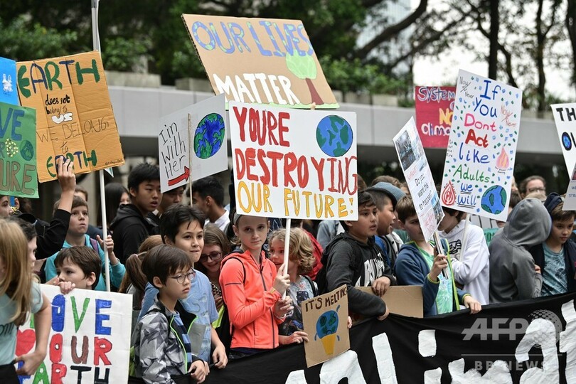 【3月15日 AFP】気候変動が未来の世代に与える影響が懸念されるなか、各国の指導者に地球温暖化対策を求める若者たちが15日、世界各地でデモを行った。主催者は、100以上の国の1000か所でデモを行いたいとしている。