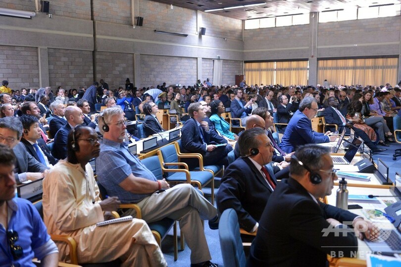 【3月16日 AFP】ケニアの首都ナイロビで開かれていた国連環境総会は15日、2030年までに使い捨てプラスチックを「大幅に削減する」と宣言した。しかし、任意の宣言であるため、環境団体は危機的な地球汚染への対策としては不十分だと警鐘を鳴らしている。