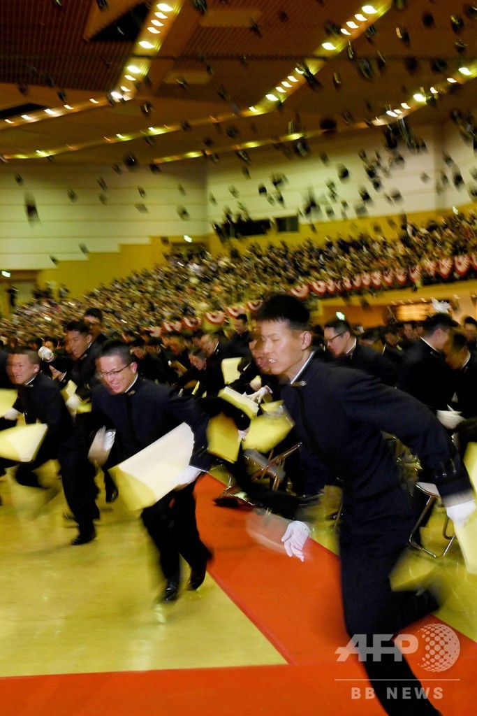 ニュース 政治・経済 安倍首相、防衛大卒業式で訓示 2019年3月17日 14:22 発信地:横須賀/日本 [ 日本 アジア・オセアニア ] このニュースをシェア ‹ › ❮ 7/7 ❯ 防衛大学校の卒業式で帽子を投げ終えて走る卒業生ら(2019年3月17日撮影)。(c)Toshifumi KITAMURA / AFP 画像作成中 ! 【3月17日 AFP】(写真追加)安倍晋三(Shinzo Abe)首相は17日、神奈川県横須賀市にある防衛大学校(National Defense Academy)の卒業式で訓示した。(c)AFP 政治・経済 一覧へ> メディア・報道関係・法人の方向け 写真・動画 購入のお問合せ>