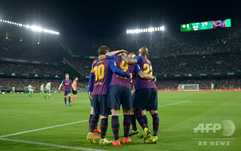 【3月18日 AFP】18-19スペイン1部リーグは17日、第28節の試合が行われ、FCバルセロナ(FC Barcelona)は4-1でレアル・ベティス(Real Betis)に快勝。チームはリーグ優勝のトロフィーに片手をかけ、見事なハットトリックを決めたリオネル・メッシ(Lionel Messi)にはホームのベティスファンも拍手を送った。