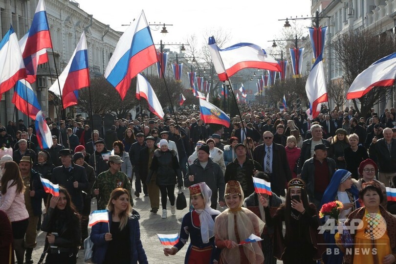 【3月18日 AFP】ロシアは18日、ウクライナ南部クリミア(Crimea)半島を併合してから5年を迎える。欧米はクリミア併合に反発している一方で多くのロシア国民は併合を祝う立場を保っているが、世論調査からはクリミア領有に対する国民の熱狂が冷めてきたこともうかがわれる。