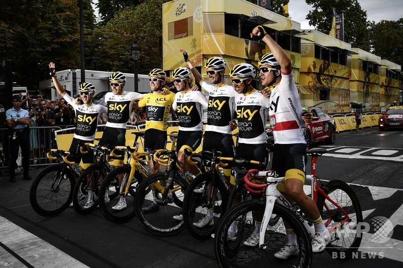 スカイは過去7年間で6回ツール・ド・フランスの総合王者を輩出し、8回の三大ツール(グランツール)総合優勝を積み重ねている強豪だが、同時に彼らだけパフォーマンス向上薬の使用を特別に認められているのではないかと議論の的にもなっている。(c)AFP/John WEAVER