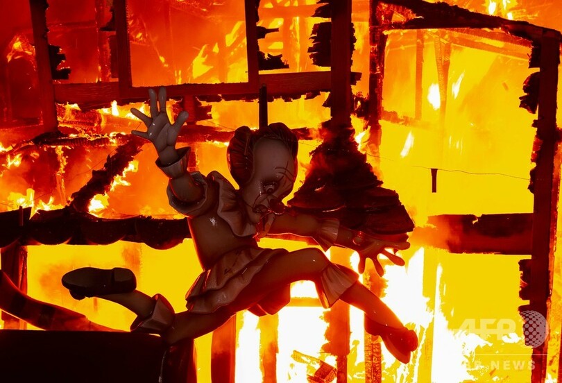 【3月20日 AFP】スペイン・バレンシア(Valencia)で行われていた火祭り「ファリャス(Las Fallas)」が19日、最終日を迎え、段ボールでつくられた巨大な構造物とその中に置かれた張り子の人形「ニノット(Ninot)」が燃やされた。