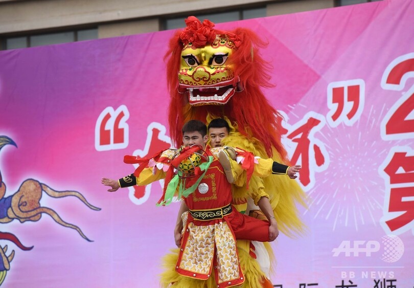 「江蘇省竜踊・獅子舞の里」と呼ばれている西来橋鎮(Xilaiqiao)を会場に、タイ、マレーシアなど国外や国内各地から合計21チームが集まった。(c)CNS/JCM/AFPBB News