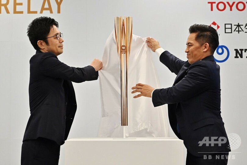 トーチは長さ71センチ、重さ1.2キロ。作製には新幹線の製造に用いられる技術が生かされているという。東京五輪の聖火リレーは福島県からスタートする。(c)AFP