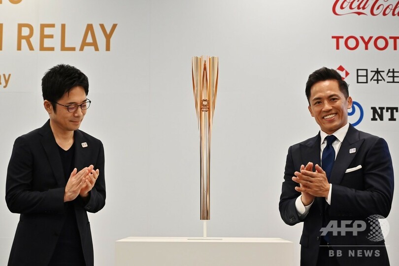 トーチは長さ71センチ、重さ1.2キロ。作製には新幹線の製造に用いられる技術が生かされているという。東京五輪の聖火リレーは福島県からスタートする。(c)AFP