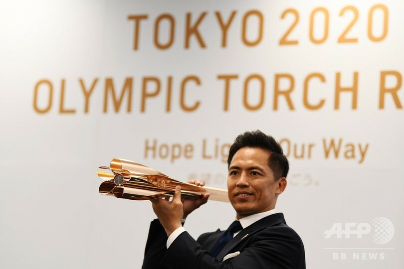 トーチは長さ71センチ、重さ1.2キロ。作製には新幹線の製造に用いられる技術が生かされているという。東京五輪の聖火リレーは福島県からスタートする。(c)AFP