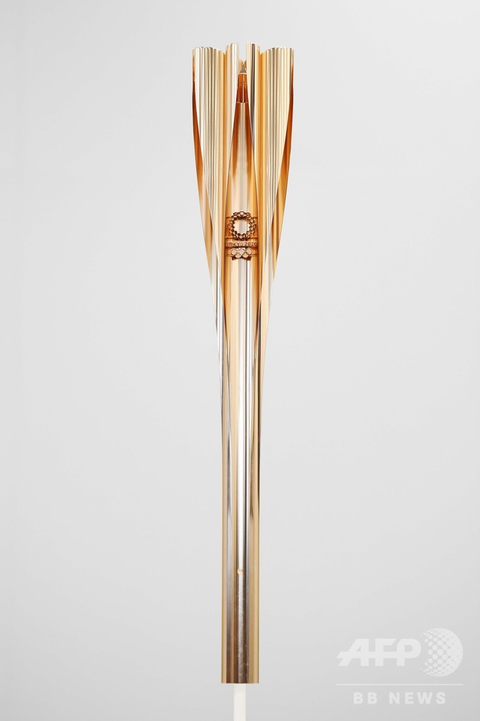 トーチは長さ71センチ、重さ1.2キロ。作製には新幹線の製造に用いられる技術が生かされているという。東京五輪の聖火リレーは福島県からスタートする。(c)AFP
